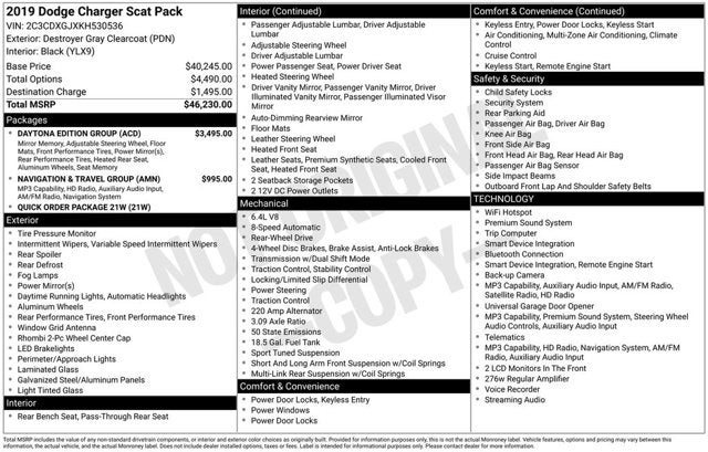Don't miss your chance to own this exceptional 2019 Dodge Charger R/T Scat Pack. Schedule a test drive today and experience the thrill of pure American muscle.