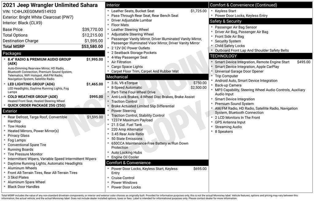 The Manufacturer's Suggested Retail Price excludes tax, title, license, dealer fees and optional equipment. Dealer sets final price.