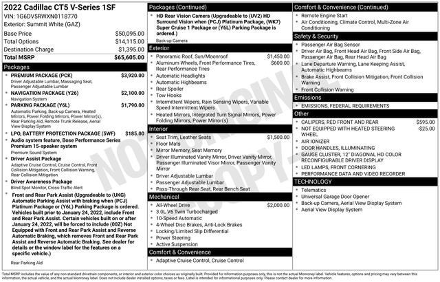 - Heated and ventilated driver and front passenger seats (on CT5-V, certain vehicles built on or after 3-14-2022 through 5-1-2022 will not be equipped with heated or ventilated driver and front passenger seats. Contact a dealer for details or check the window label for the features on a specific vehicle