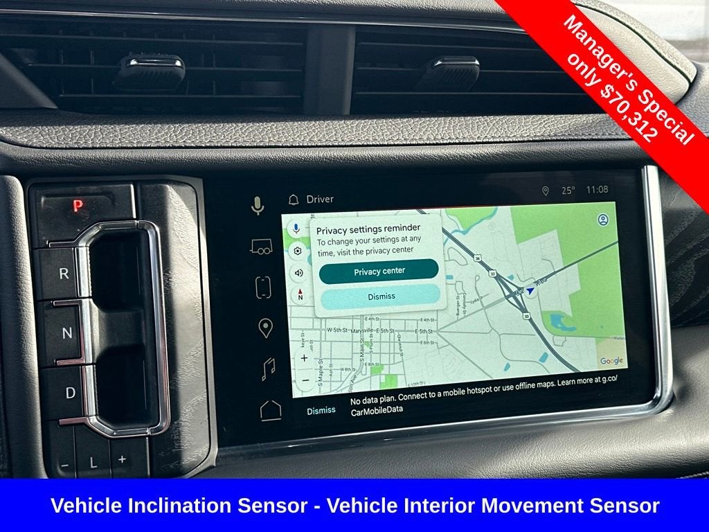 - Audio system, 10.2" diagonal Premium GMC Infotainment System with Google built-in includes color touch-screen, multi-touch display, AM/FM stereo, Bluetooth® streaming audio for music and most phones; featuring wireless Android Auto and Apple CarPlay capability for compatible phones, advanced voice recognition, in-vehicle apps, personalized profiles for infotainment and vehicle settings