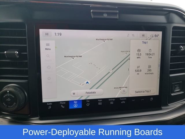 The Lariat trim level adds a wealth of premium features, including the Lariat Ultimate Package with a Tailgate Step & Handle, Head-Up Display, 4-Way Adjustable Headrests, Power-Deployable Running Boards, and a premium B&O Unleashed Sound System. The Lariat Premium Package further enhances the driving experience with advanced safety and convenience technologies like Lane Departure Warning, Pro Trailer Hitch Assist, Ford Co-Pilot 360 Assist 2.0, and more.